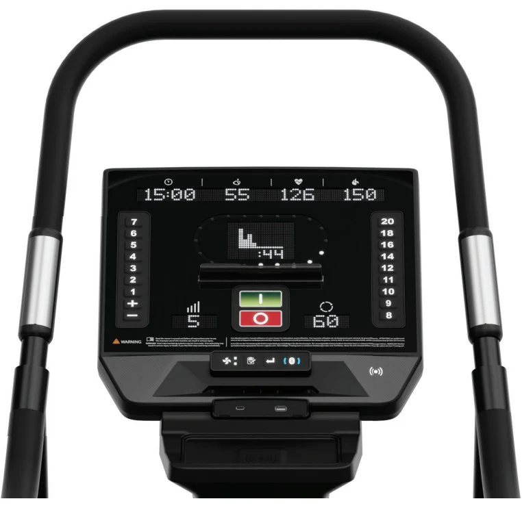 The StairMaster FreeClimber 8FC is an innovative stairclimber that delivers a heart-pounding, low-impact workout with added cushioning and independent pedal geometry via four-bar linkage for a fluid, natural stepping motion. It’s designed for users who love to hate the challenge, building endurance and calorie burn in a compact footprint. The machine connects to Apple Watch or Samsung Galaxy Watch via NFC for real-time data sharing. The embedded Android-powered console offers HD resolution, high-speed functionality, on-board apps, IPTV, Bluetooth connectivity, and entertainment options like HDMI streaming and TV tuner. Available with LED or touchscreen console options (10″, 16″) for customizable user experiences, it includes a hot bar with stop button, heart rate, and level controls for seamless operation.