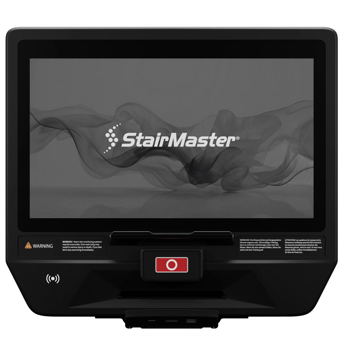 The StairMaster 8GX Stairclimber is a premium cardio machine that combines intense stair climbing with strength training, featuring durable rust-free polypropylene construction, ergonomic handrails for multiple climbing positions, and a quiet, smooth drive train for superior performance. It delivers a heart-pumping workout with a 6-inch step height and 10” x 18” step surface, supporting 20 step rate levels from 24-162 steps per minute. Connectivity includes Apple Watch and Samsung Galaxy Watch integration via NFC on OpenHub consoles, with options for LCD, 10” or 16” displays offering HIIT programming, RunTV, web media, HDMI streaming, Bluetooth, and TV tuner for engaging sessions. Ideal for commercial gyms, it promotes calorie burn and endurance with a 10-foot ceiling clearance and 400 lb user capacity.